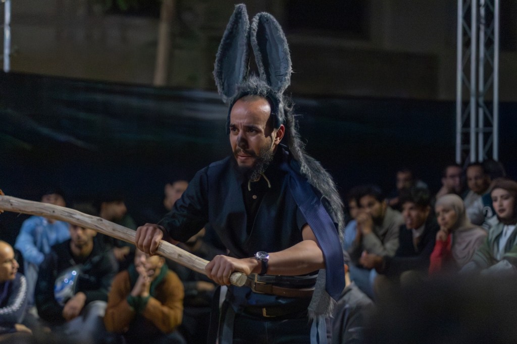 HMAR TAHOUNA (l’âne du moulin), est une création de l’artiste Salah CHAREF, dont le génie a inspiré un espace de débat enrobé d’une belle dynamique théâtrale où échanges, évasion, décors, symboles, sons et étoffes font voyager les spectateurs tout en les ancrant plus que jamais dans une réalité sociale rarement débattue: Et s’il était temps de s’arrêter, grâce à nos amis les animaux, pour remettre les pendules à l’heure, et interroger les évidences et mécanismes de nos quotidiens, au profit d’une suspension réflexive où l’humour se mêle au sarcasme.